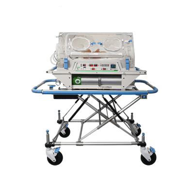 Cáng để lồng ấp có 4 bánh có khoá, được thiết kế phù hợp với xe cứu thương. Có thể thay đổi chiều cao.