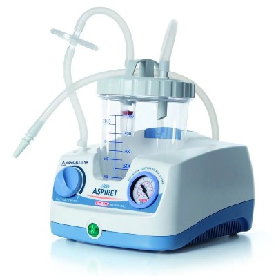 NEW ASPIRET là máy hút dịch (hút đờm) loại để bàn dùng để hút các chất lỏng cơ thể, hút nội khí quản, hút đờm mũi, miệng ở người lớn hoặc trẻ em. Rất thích hợp với bệnh nhân phẫu thuật mở khí quản, các ứng dụng trong tiểu phẫu và điều trị chăm sóc sau phẫu thuật tại nhà. Thiết bị chính trang bị đồng hồ chân không (bar & kPa) và bộ điều chỉnh chân không.
