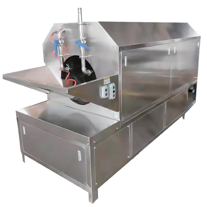Làm sạch triệt để: Sự kết hợp giữa chuyển động lăn tròn của nguyên liệu bên trong trống và hệ thống phun nước áp lực cao đảm bảo mọi bề mặt dược liệu đều được làm sạch, kể cả các kẽ hở.